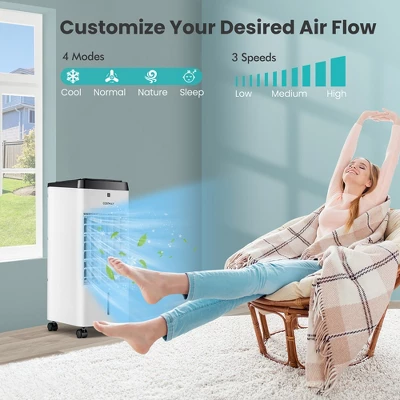 - Customizable Airflow & Wide Oscillation: This personal swamp cooler features 4 wind modes ( cooling, normal, natural and sleep) and 3 wind speeds (low, medium, high) to meet your different needs. It can also automatically swing left and right within 70° and be manually adjusted up and down within 70°.