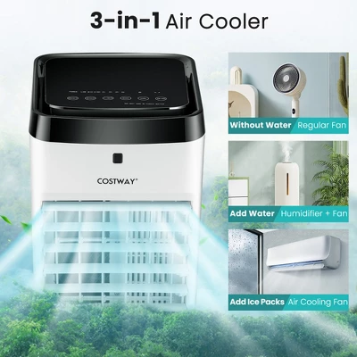 - 4-in-1 Air Cooler with Double Filters: The multifunctional evaporative air cooler can blow out wind (without water), accelerate air humidity (with water) and cool you down quickly (with 2 ice packs). Besides, the dust filter mesh and honeycomb pad effectively absorb dust and remove harmful substances to create fresher air.