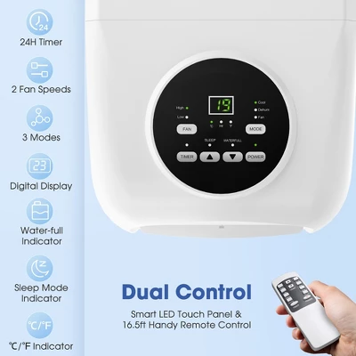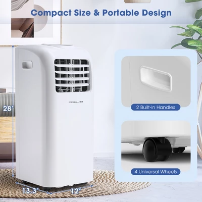 - Dual Control & Easy Movement: This compact air conditioner comes with a smart LED touch panel and 16.5ft handy remote control (2 x AAA batteries included), which allows you to easily adjust the time, mode, speed, temperature, etc. Moreover, 2 built-in handles and 4 universal wheels make it easy to move and carry.