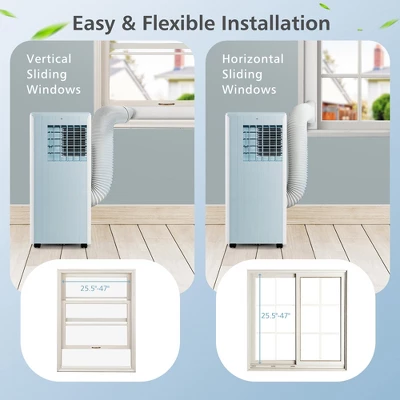 - Easy Operation & Installation: Equipped with an intelligent LED touch control panel and a handy remote control, this portable air conditioner is easy to use. Moreover, the included window kit and detailed instruction allows for simple installation. And the AC unit fits vertical or horizontal sliding windows.