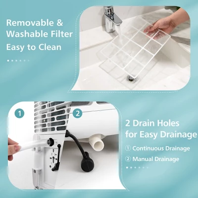 - Compact Size & Thoughtful Design: Equipped with 2 built-in handles and 4 universal wheels, this compact AC can be easily moved from room to room. Moreover, there is a wrapping post to keep the power cord organized and 2 drainage options for you to choose: continuous drainage or manual drainage.