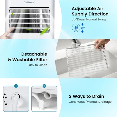 - 【Enjoy Instant Cooling to the Whole Room:】This 10000 BTU portable air conditioner provides steady and fast cooling to rooms up to 350 sq.ft, suitable for living room, bedroom, office and more. This portable air conditioner can cool the room down to 61℉ with 90° manual vertical swing.