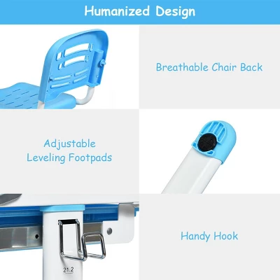 Costway Height Adjustable Kids Desk Chair Set Study Drawing W/Lamp & Bookstand