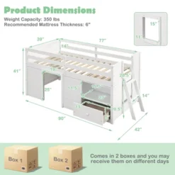 Costway Twin Size Low Loft Bed With Storage Drawer Activity Center Solid Wood Bed Frame
